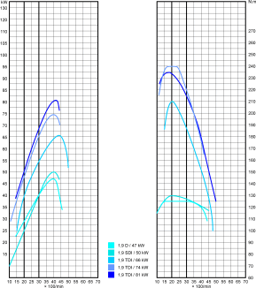 No a na koniec mám aj krivky motora 1,9D/47, ktorý je na rozdiel od Fabie mierne odlišne naladený.